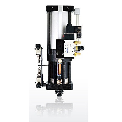 增壓缸是將一油壓缸與增壓器作一體式相結(jié)合,利用增壓器的大小不同受壓截面面積之比,因?yàn)閴毫Σ蛔儯?dāng)受壓面積由大變小時(shí),則壓強(qiáng)也會(huì)隨大小不同而變化的原理,從而達(dá)到將氣壓壓力提高到數(shù)十倍的壓力效果,以預(yù)壓式增壓缸為例:當(dāng)工作氣壓壓在液壓油表面時(shí),液壓油會(huì)壓縮空氣作用而流向預(yù)壓行程腔,此時(shí)液壓油會(huì)迅速推動(dòng)式件作位移,當(dāng)工作位移遇到阻力大于氣壓壓力時(shí)缸則停止動(dòng)作,此時(shí),增壓缸的增壓腔因?yàn)闅鈩?dòng)信)動(dòng)作,開(kāi)始增壓從而達(dá)到成型產(chǎn)品的目的。 氣液增壓缸是結(jié)合是氣缸和油缸優(yōu)點(diǎn)而改進(jìn)設(shè)計(jì)的,液壓油與壓縮空氣嚴(yán)格隔離,缸內(nèi)的活塞桿接觸工作件后自動(dòng)啟程,動(dòng)作速度快,且較氣壓傳動(dòng)穩(wěn)定,缸體裝置簡(jiǎn)單,出力調(diào)整容易,相同條件下可達(dá)到油壓機(jī)之高出力,低損耗,安裝容易,所占用的空間小,故障少無(wú)溫升之困擾,壽命長(zhǎng),噪聲小,等核心特性。 1、預(yù)壓式增壓缸:當(dāng)工作氣壓壓在液壓油表面時(shí),液壓油會(huì)因壓縮空氣作用而流向預(yù)壓行程腔,此時(shí)液壓油會(huì)迅速推動(dòng)軸心作位移,當(dāng)工作位移遇到的阻力大于氣壓壓力時(shí)預(yù)壓軸心則停止動(dòng)作,此時(shí),增壓缸的增壓段因?yàn)闅鈩?dòng)壓力動(dòng)作,增壓軸心亦開(kāi)始作位移動(dòng)作,并擠壓預(yù)壓缸體里的低壓油,使之增壓從而產(chǎn)生強(qiáng)大推力的效果。 2、直式增壓缸:當(dāng)工作氣壓壓在增壓段活塞表面時(shí),活塞會(huì)因壓縮空氣作用而流向油腔,此時(shí)液壓油會(huì)迅速推動(dòng)軸心作位移,此時(shí)軸心移動(dòng)的距離(行程)為高壓力行程(增壓行程)