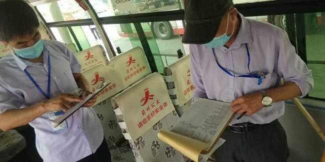 徐俊智一行重點檢查了疫情防控、車輛安全等防范措施落實情況,查看運營車輛消毒情況以及掃“津門戰(zhàn)役”二維碼并逐人測體溫登記等情況。要求駕駛員嚴格落實“三全一轉”,嚴格執(zhí)行公交車滿載率不超過70%的規(guī)定,牢固樹立安全無小事的思想,用心為廣大群眾創(chuàng)造一個安全有序的乘車環(huán)境。
