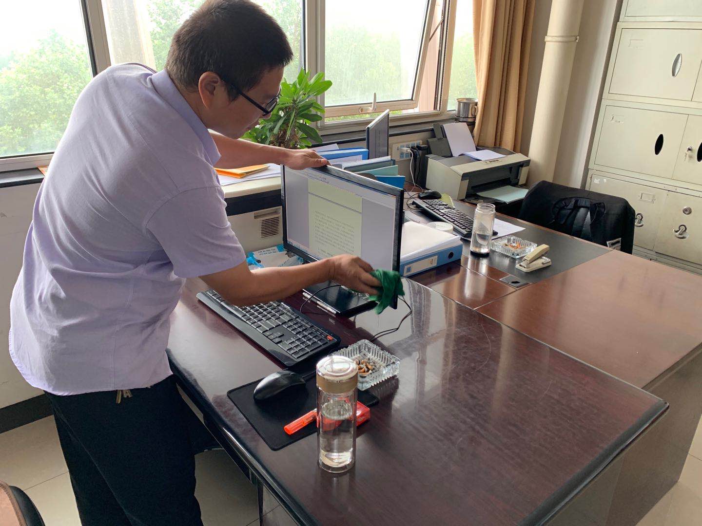 6月26日,我公司組織全體員工對(duì)辦公環(huán)境進(jìn)行全面清掃,清除積存垃圾,清理衛(wèi)生死角、盲點(diǎn)。對(duì)公共區(qū)域進(jìn)行全面排查,及時(shí)清理積塵,并加大保潔力度,保持廁所、垃圾點(diǎn)的清潔,有效提升辦公環(huán)境衛(wèi)生水平。